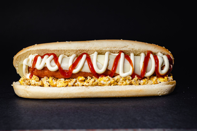 UN HOTDOG 27: Wurstel, uovo strapazzato, scamorza affumicata, ketchup, maionese (servito con patatine dippers*)